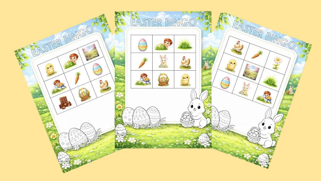 Per i bambini di prima e seconda elementare abbiamo pensato a un bingo di Pasqua semplice e immediato. I bambini ascoltano la parola pescata dall’insegnante, osservano la scheda e cercano l’immagine giusta: un modo naturale per lavorare sul vocabolario senza appesantire l’attività.